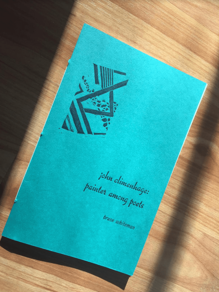 Bruce Whiteman, John Climenhage: painter among poets. Peterborough, Ontario: Poets & Painters Press, 2021, 50 copies.